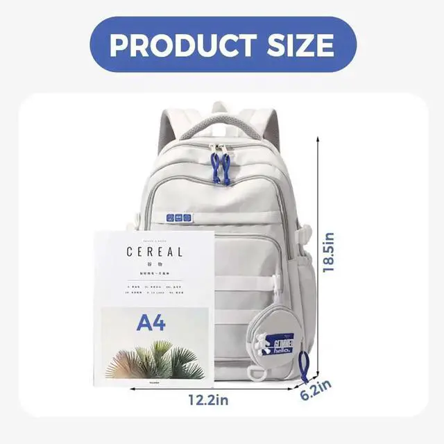 Large Capacity: Measuring 12.2" x 6.2" x 18.5" (L xW x H), this preppy backpack offers ample storage space for daily essentials such as Pad, laptop, notebook, cell phone, wallet, water bottle and more.