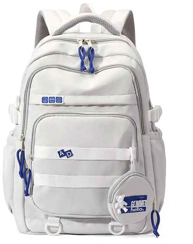 MININAI Preppy Aesthetic Backpack for Teen Girls Boys Elementary Middle High School Student Large College Laptop Cute Bookbag (Grey)
