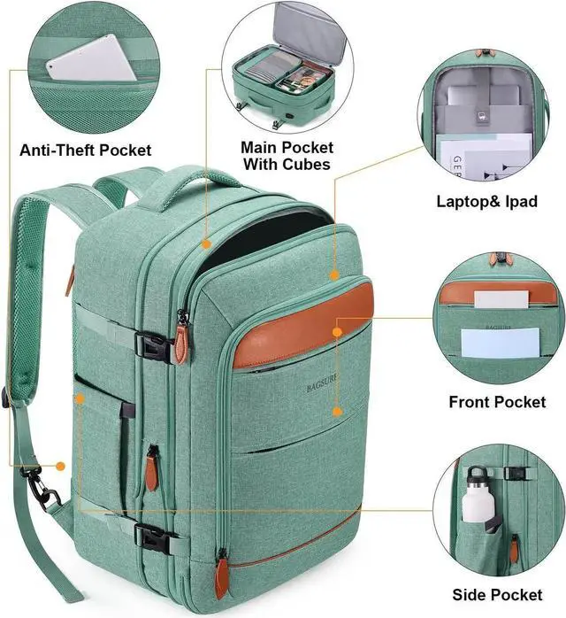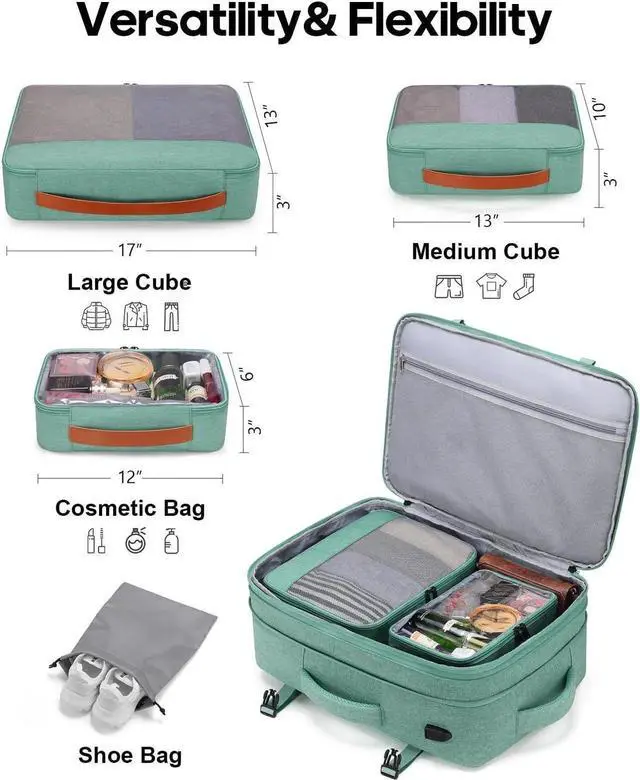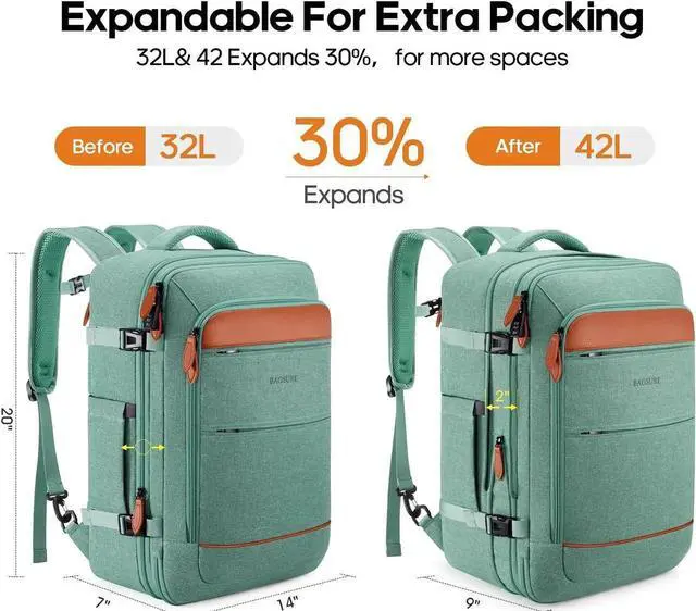 Bagsure Travel Backpack 42L Flight Approved Carry On Backpack, Expandable Laptop Backpack with Packing Cubes & Shoe Pocket, Water Resistant Luggage Daypack for Men Women Business Weekender Bag