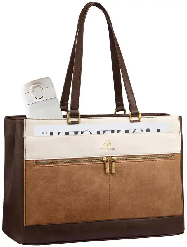 LOVEVOOK Laptop Bag for Women, 15.6 Inch Vintage Work Tote Bags for Women, Leather Teacher Bag, Large Computer Bag, Waterproof Handbags Womens Briefcase Office Messenger