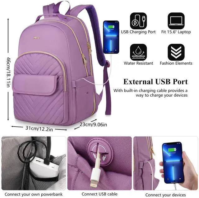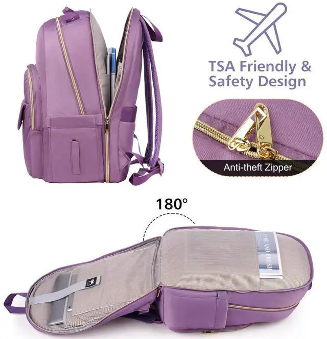 NOVELTY IN STYLEThis laptop backpack women is designed with exquisite gold-plated zippers and stylish twill nylon material. The shine of fabric and metal complement each other, serve perfectly as laptop backpack, bookbag, schoolbag, school backpack and backpack for travel or work. Best gifts for women, girls, Mother's Day.