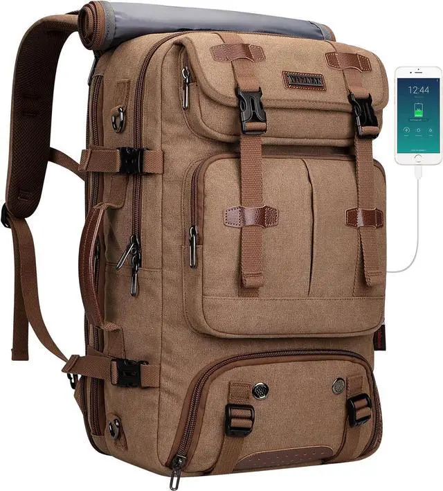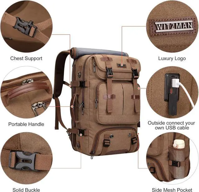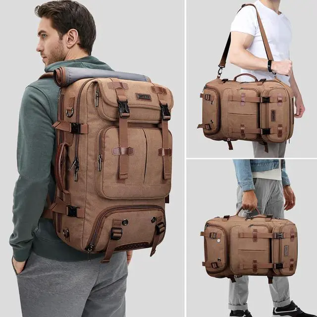 Convertible backpack: This canvas travel backpack can be used as a backpack, tote bag, and shoulder bag with shoulder straps;A 30-52 inch detachable and adjustable shoulder straps; There is a zippered pocket on the back that can hide the backpack strap when carrying this bag as a tote bag or shoulder bag,crossbody bag. Hanging backpacks and straps casually is not confused.In addition, we have added a hard board design at the bottom of the bag to support a portion of the weight.