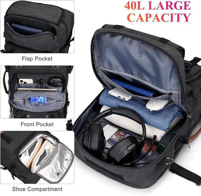 Easy to organize: The travel backpack has a side variable opening computer compartment that can accommodate 12 to 16 inches of laptop space for storing different travel equipment. The travel backpack is large enough with a capacity of 40L to accommodate vacations, weekend vacations, and overnight trips.