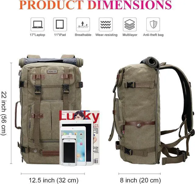 Convertible Backpack : This canvas travel backpack can be used as backpack, tote bag, and crossbody bag with a shoulder strap; And there is a zipper pocket on the backside that you can hidden the backpack strap when you carry this bag as tote bag or crossbody bag. Without puzzle of having those backpack strap hanging uninhibitedly.