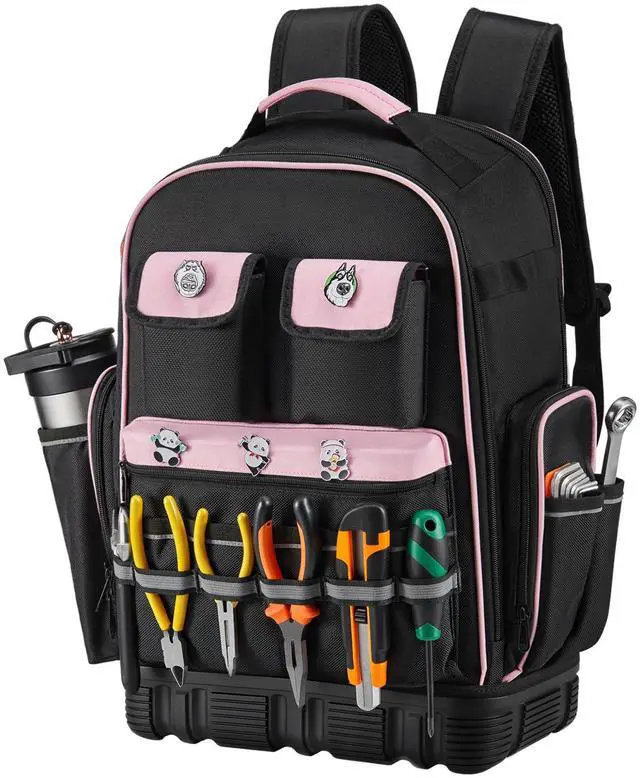 Ultimate Organization: This tool backpack (13 x 7.87 x 19.29 in) holds 75 lbs and keeps tools organized. With 56 pockets, a laptop compartment, and a document pouch, your gear stays protected and easy to access Durable & Ready for