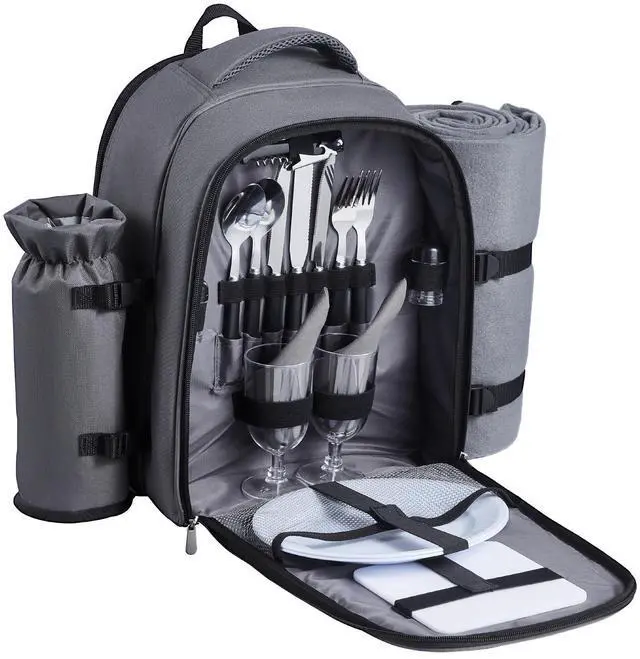 : This picnic backpack bag features padded shoulder straps for a comfortable carry, smooth zippers for easy access, and a portable handle for versatile use