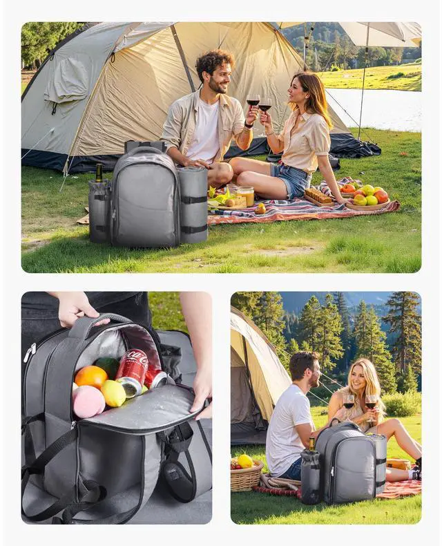 Attractive Look: Crafted with high-quality 600D Oxford fabric, this picnic backpack for camping is both wear-resistant and easy to clean. Its sleek, attractive design makes it a great present for outdoor enthusiasts Intimate