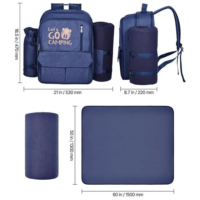 Attractive Look: Crafted with high-quality 600D Oxford fabric, this picnic backpack for camping is both wear-resistant and easy to clean. Its sleek, attractive design makes it a great present for outdoor enthusiasts Intimate