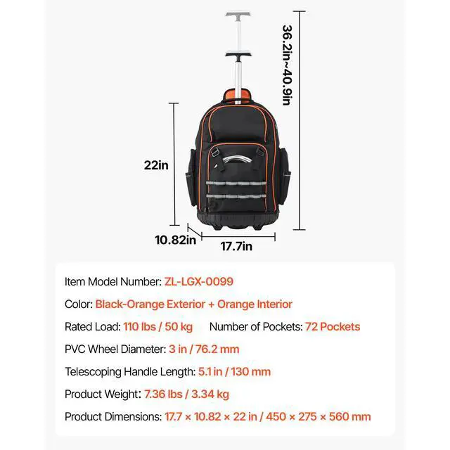 Design: Easily switch between a trolley and backpack. Just stow the shoulder straps and retract the handleour wheeled rolling tool backpack is the ideal solution for carrying tools, whether rolling or wearing it on your back