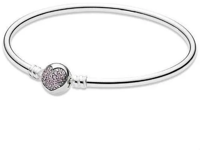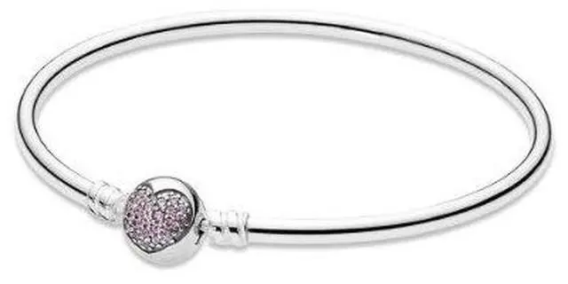 This beautiful silver fabric Pandora bracelet with Sterling silver Pandora lock has a luxurious appearance by the four separate strands. This triple bracelet 590716PCZ by Pandora is available in 3 sizes. This beautiful silver bangle bracelet with pink zirconia heart on the lock is perfect for your collection Charms and gives a radiant personal appearance!.