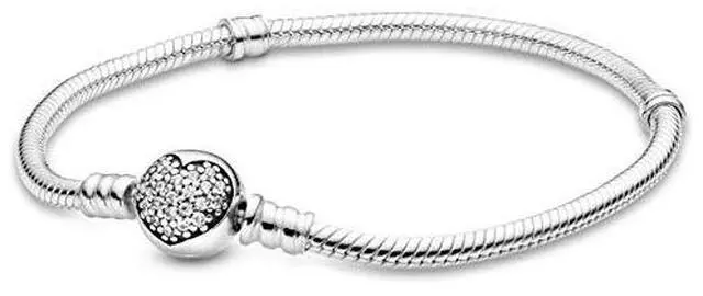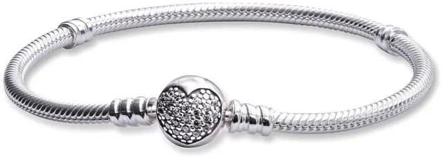 You are sure to fall in love with this beautiful sterling silver charm bracelet. The perfect carrier for your personal love story this snake-chain style features a ball clasp adorned with dazzling cubic zirconia stones in a heart-shaped motif.