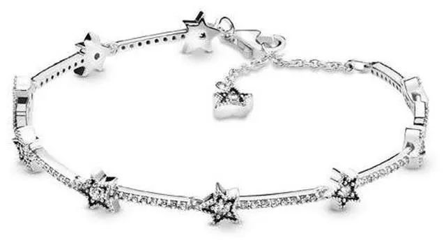 Let yourself be inspired by our magical dreamy world based on the mystery of the night sky and the brilliance of starlight. Our star bracelet features a collection of irregularly-shaped sterling silver star shapes embellished with round cubic zirconia stones bound together by pave bars to evoke a life beyond your wildest dreams with each star symbolizing a past milestone or a future achievement. Let the sterling silver bracelet remind you of all of the proud moments that make you you.