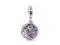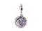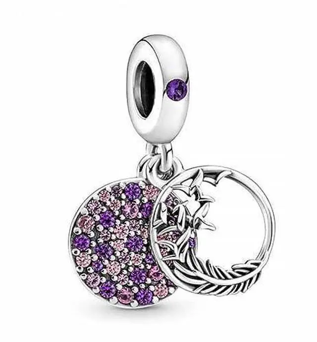 Make your look sparkle with the Pave Feather Dangle Charm. This sterling silver charm has a back dangle with pave made of pink cubic zirconia and pink and purple crystals along with an engraved message on the reverse that reads Spread love everywhere you go. The openwork front dangle features an intricate feather design that slides aside to reveal the pave back dangle bringing a layered textural touch to this delicate charm.