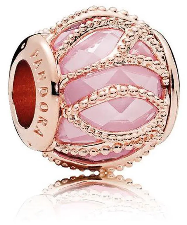 Strands of blush-hued metal wrap around a faceted pink stone on this spectacular PANDORA Rose charm. Its multidimensional design and brilliant clear stones make bracelets look wonderful.