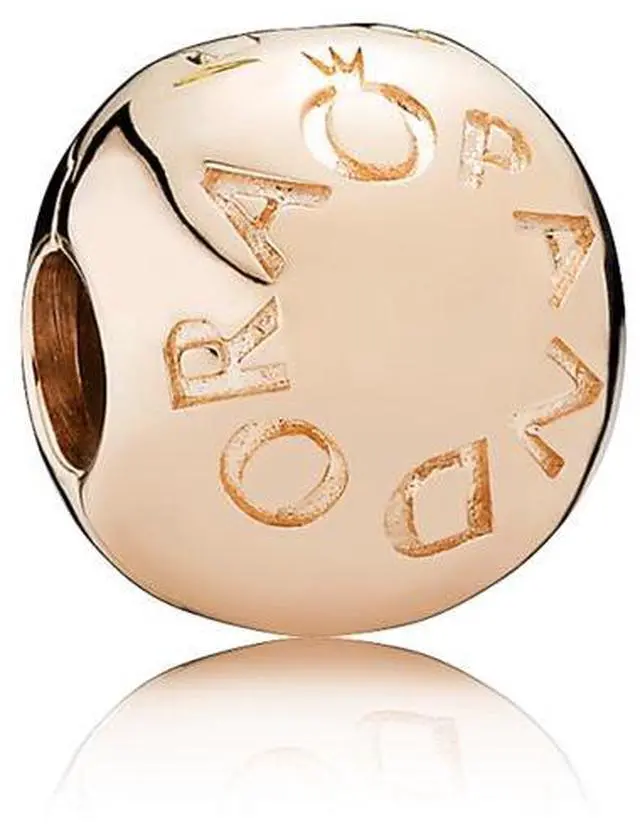 Add visual interest to your bracelet with this Pandora logo clip charm. This signature piece is made from Pandora Rose (14 rose gold-plated unique metal blend) thats lined with a silicone grip on the inside to ensures it stays in place giving you the freedom to create exactly the look you want. Clip it onto your favourite bracelet bangle or leather bracelet to create a bespoke look. This clip charm features no silicone grip so it will slide if not styled onto threads (two raised charm dividers).