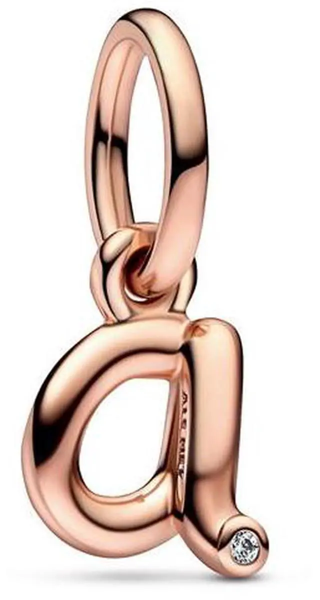 Spell it out with our Letter a Script Alphabet Dangle Charm. Inspired by bent wire and the movement of a pen across paper this 14k rose gold-plated charm features a three-dimensional letter a that looks handwritten. The end of the lower-case letter is playfully punctuated with a round brilliant-cut clear cubic zirconia representing that there is something precious in all of us. Wear it as a symbol of who you are or a reminder of someone you love.