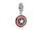 Join The Avengers for duty and carry the MARVEL x Pandora The Avengers Captain America Shield Dangle Charm! Hand-painted in American red white and blue enamel the shield features a white star in the middle of blue and red circles. The positive message TRUE TO YOURSELF is engraved on the back of the shield as a wonderful symbol of hope and protection.