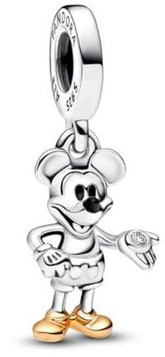 Collect a piece of Disney history with the Disney 100th Anniversary Mickey Mouse Lab-grown Diamond Dangle Charm. This sterling silver charm depicts the iconic Mickey Mouse in lifelike detail with a lab-grown diamond sparkling from his hand solid 14k gold shoes and black hand-applied enamel details on his eyes and nose. Collectors will appreciate the engraved Pandora Disney and Disney100 logos that adorn this charm. A symbol of imagination optimism and fun this Mickey Mouse charm is sure to make anyone smile.