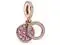 Introduce a pop of color to your collection with the Sparkling Pink Disc Double Dangle Charm. Hand-finished in Pandora Rose (14k rose gold-plated unique metal blend) this design includes a back disc decorated with beading and pink stones in various sizes. The Pandora logo and crown O monogram feature on the discs reverse side. The front circle includes clear cubic zirconia for added contrast. Style this piece with other colorful charms on your Pandora Moments bracelet for extra flair.
