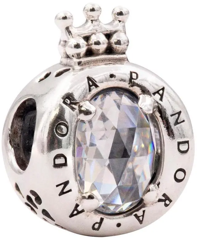 Create a timeless look with this iconic Pandora Moments crown O charm inspired by the popular Pandora crown O. It features two clear cubic zirconia set in the engraved charms regal crown. Inspired by the Pandora logo this silver charm unmistakably carries the true Pandora design DNA. Created to bring a touch of something special and immediately recognizable to your Pandora Moments bracelet this crown O charm is the perfect complement to any outfit with its iconic expression.