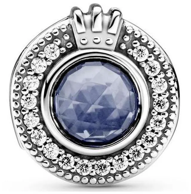 Stand out from the crowd with the Sparkling Blue Crown O charm. The pave hearts and micro-beading create a cool texture and the stones rich hue is eye-catching. With two round rose-cut skylight blue crystals hand-set in sterling silver and delicate rows of clear cubic zirconia this stunning charm will get you lots of compliments.