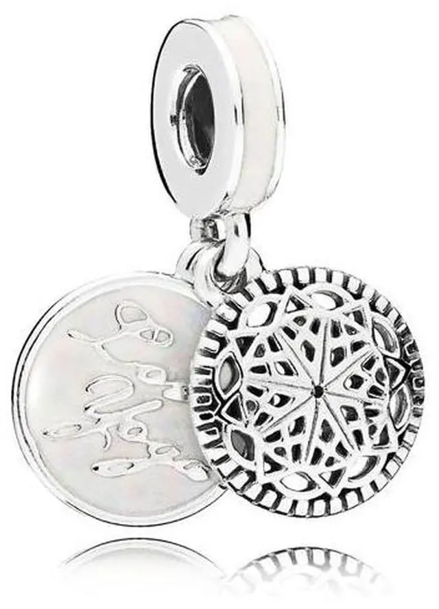 Honor your passion for the practice of yoga with this inspiring dangle. Decorated with a spiritual mandala pattern and pearlescent enamel it is a fitting tribute to the ancient discipline.
