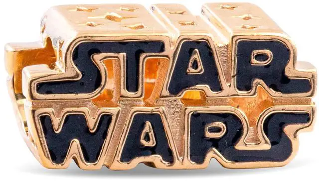 Show your love for Star Wars with the Star Wars Shining 3D Logo Charm. Hand-finished in Pandora Shine(18k gold-plated unique metal blend) this piece features hand-applied black enamel details to highlight each letter. There are also cut-out stars on the sides of the charm to make for the ultimate symbol of the Star Wars universe. Wear this piece on your go-to bracelet with other Star Wars charms to secure your place as a true Star Wars fan.