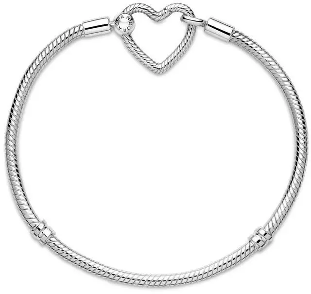 Get creative with the Pandora Moments Heart Closure Snake Chain Bracelet. Charms can be worn on both the snake chain pattern and the heart closure. The heart shaped closure functions as a lobster clip but can be also styled with up to two dangles or pendants!.