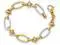 Two tone 14 karat yellow and white gold with polished chain links is shimmering in this fancy gold bracelet with lobster clasp.