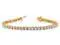 Shimmering 14 karat yellow gold with 55 sparkling high quality lab grown diamonds 2.85 Carats (ctw VS2-SI1, E-F) glimmer and glow across this tennis bracelet that is sure to make a statement. Lab grown diamonds are man-made diamonds that are chemically, physically, and optically identical to diamonds originating from nature. Both have the same chemical composition and atomic structure, producing the very same durability, fire, and sparkle.