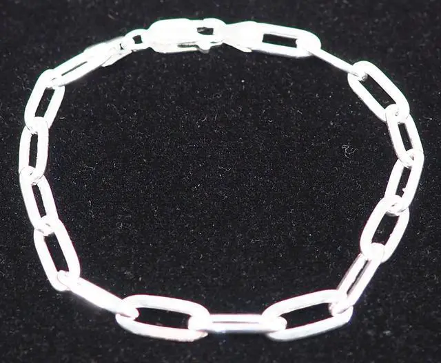 6mm Solid 925 sterling silver Italian Paperclip Link Chain Bracelet