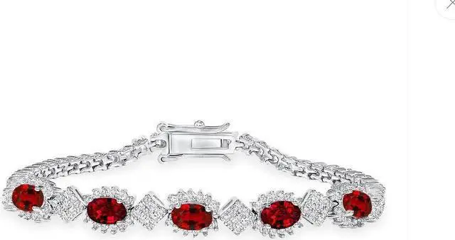 7-Inch Solid 925 Sterling Silver Marquise Red Ruby Cubic Zirconia Bracelet Rhodium Plated, Approx 11 grams Made In Italy for women