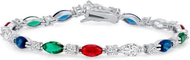 7 Inch Solid 925 Sterling Silver Multicolor Marquise Cubic Zirconia Tennis Bracelet Rhodium Plated, Approx 18 grams Made In Italy for women