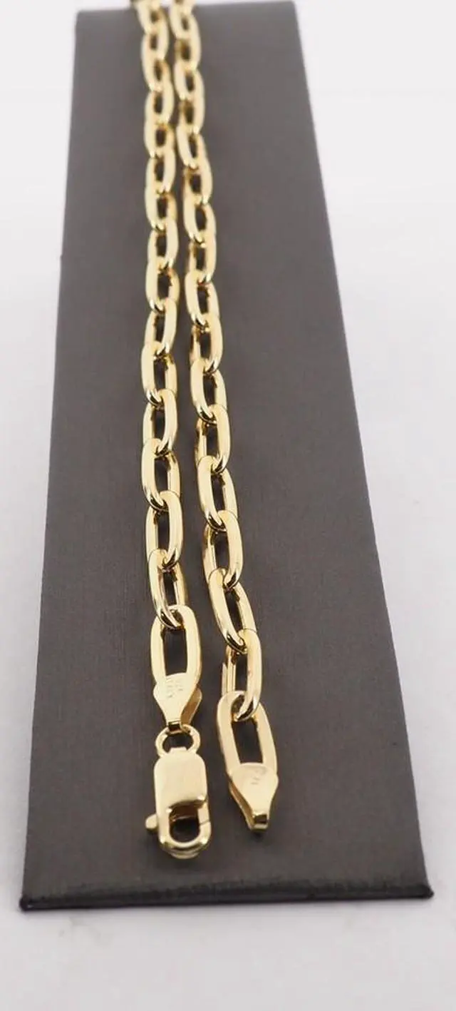 Solid 925 Sterling Silver 14K Gold Plated Paper Clip Chain Bracelet Made in Italy suitable for all ages