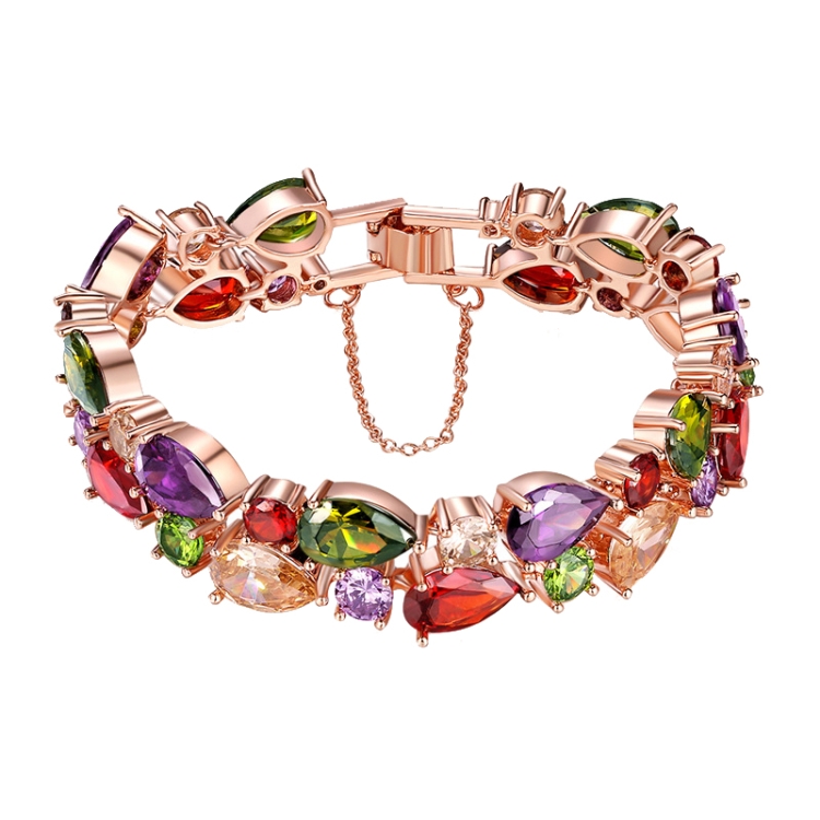 16cm Fashion Mona Lisa Rose Gold Colorful Zircon Bead Bracelets
