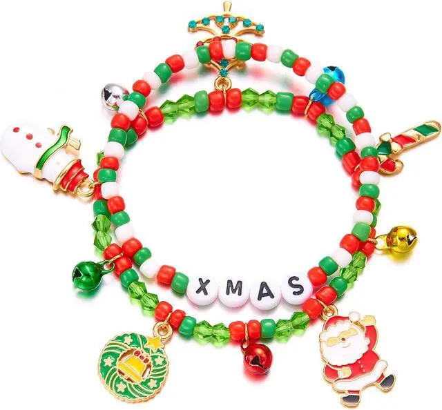 The Christmas beaded bracelet is the right size, unique design, lightweight and flexible, suitable for anyone to wear. The material of the pendant beaded bracelet is environmentally safe and comfortable to wear, which is the first choice for Christmas necklace ornaments.