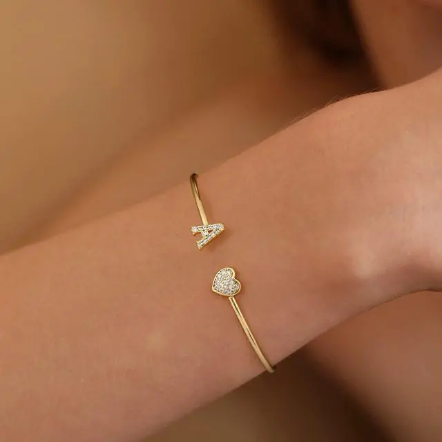A perfect initial bracelet for your daughter on her birthday and any other meaningful day. She will feel the deep love when she receives the gold bangle bracelet!