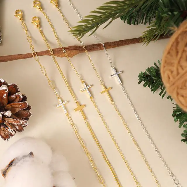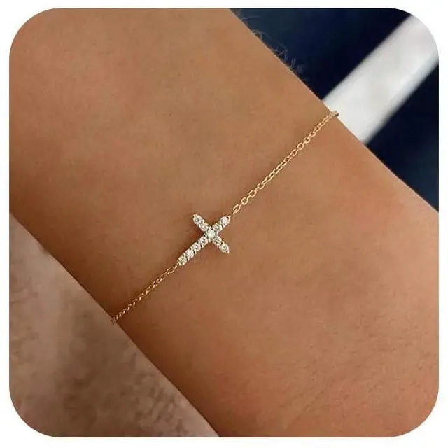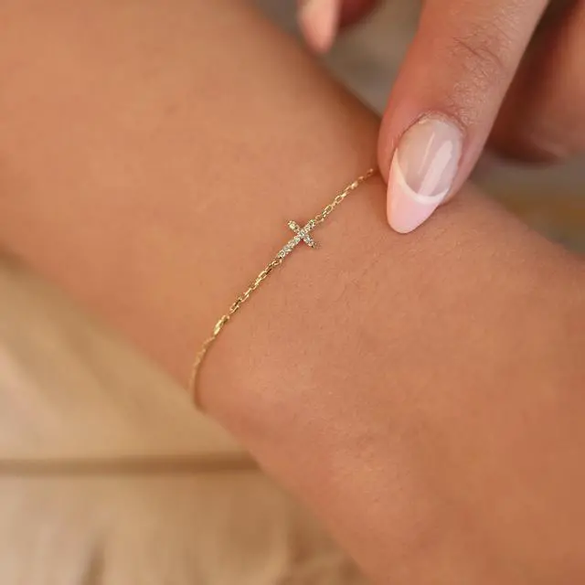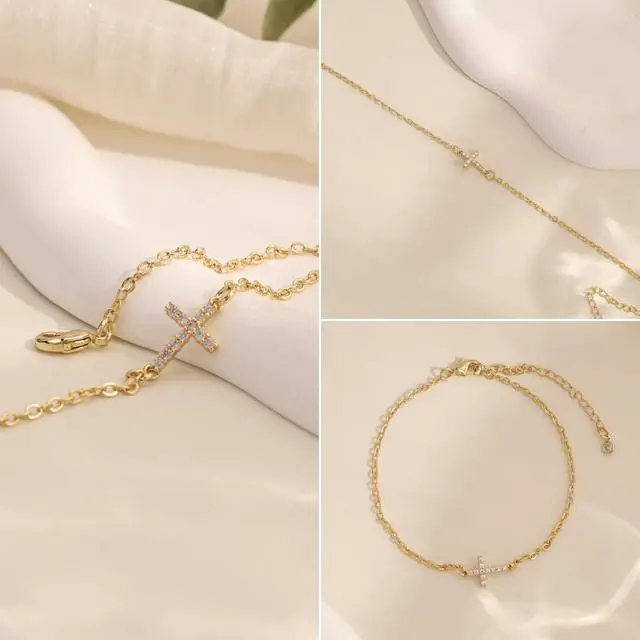 This is an exquisite cross bracelet made of 14k gold-plated or silver plated material, suitable for any occasion and a perfect accessory
