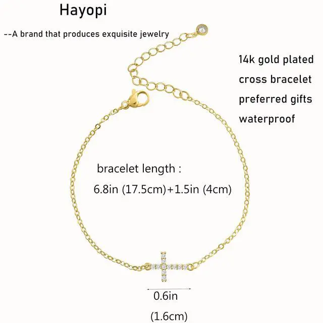 This is an exquisite cross bracelet made of 14k gold-plated material, suitable for any occasion and a perfect accessory