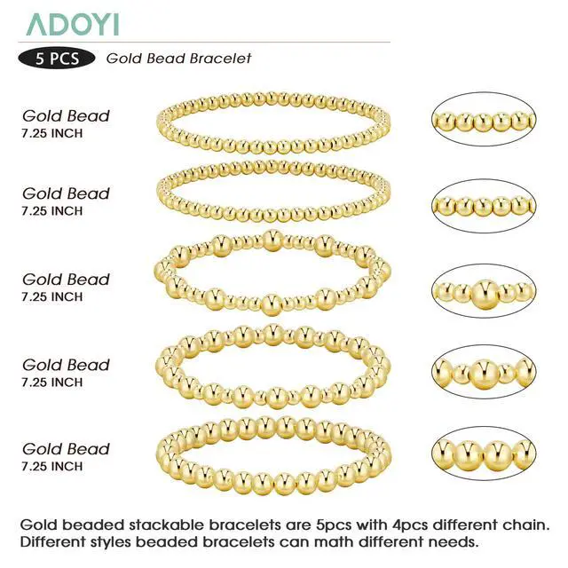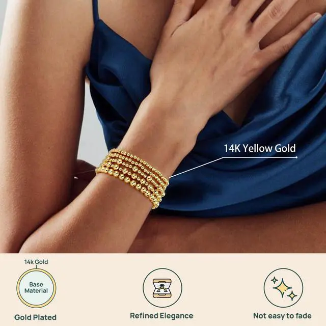 Gold Beaded Bracelets are plated with 14K gold, which is shiny and not easy to fade and turn green.
