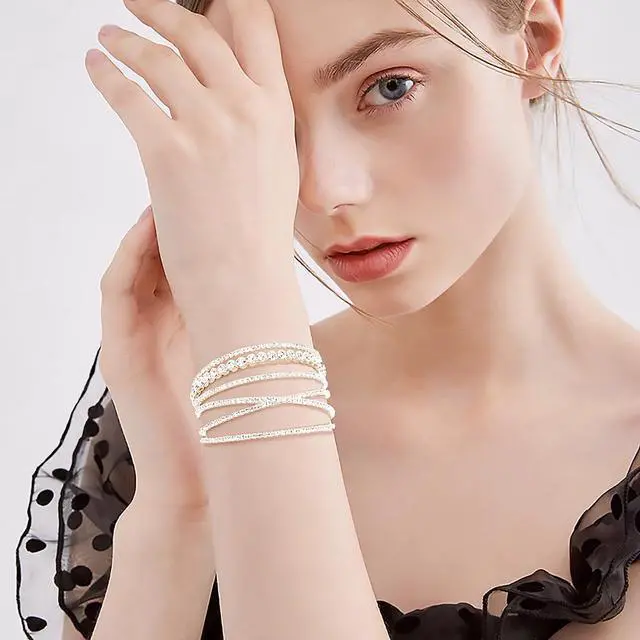 Sparkling Design: This rhinestone bracelet features numerous rhinestones of different size, super shinny.