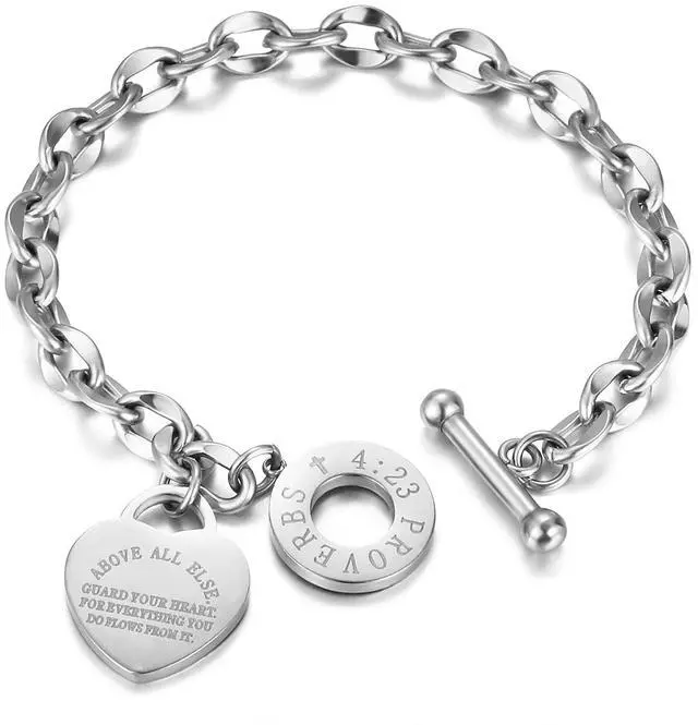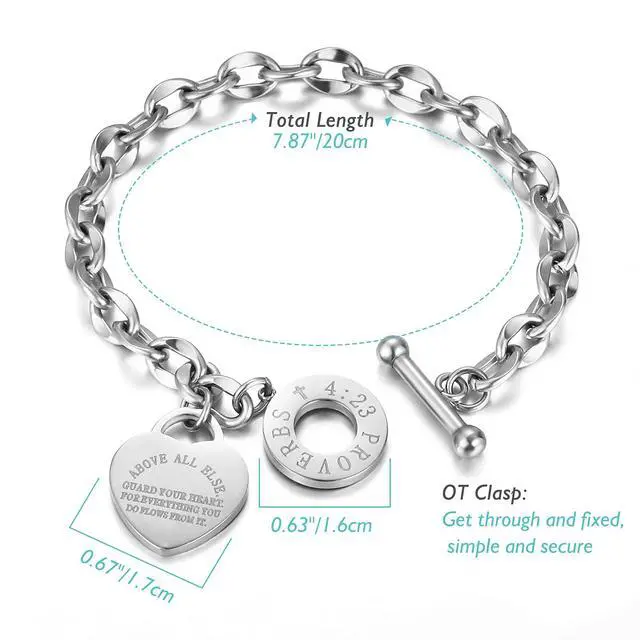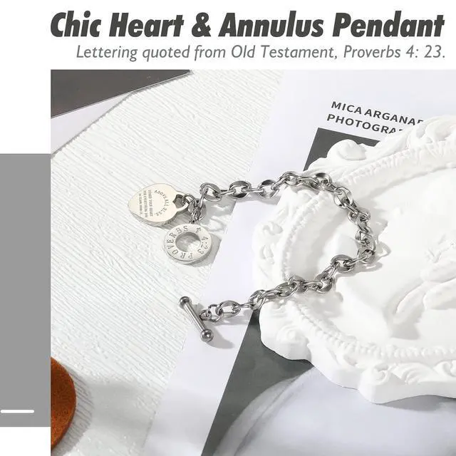 | Heart Pendant with Bible Verse | Stackable, Irregular Design | Layered Delicate Ring Bracelet | Flexible, Non Tarnish | Exquisite and Sparkling Zircon | Gold and Silver Mixture | Four Leaf Clover Zircon Design |