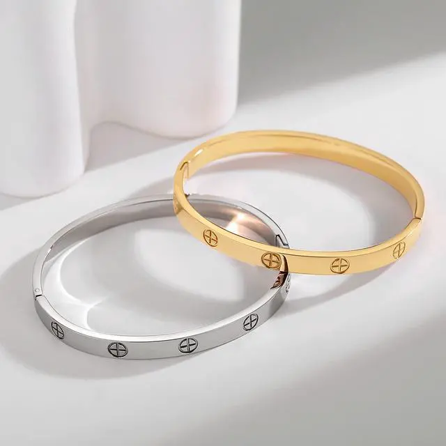 18K Gold-plated Bracelets for Women Trendy Cross Love Bangle Stack Stainless Steel Jewelry Anniversary Her Birthday Wedding Christmas Gifts for Women Wife Friend Mom Stocking Stuffers