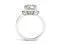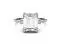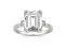 This beautiful fashion ring showcases a 10x8mm emerald step cut Moissanite by Charles & Colvard gemstone. Beautifully crafted in rhodium plated 14K white gold and secured in a four prong setting. Ring size 9. The Total Diamond Equivalent Weight (DEW) is 3.69cttw (Actual Weight 3.36cttw).