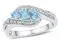 Three beautiful blue topaz gemstones the birthstone of December sit at the center of this sterling silver ring with accents diamonds on both sides to help complete the look of this elegant gemstone ring.