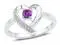 A single solitary purple lab created amethyst gemstone sits in the sleek sterling silver heart foundation and is highlighted by sparkling accents diamonds of the gemstone.