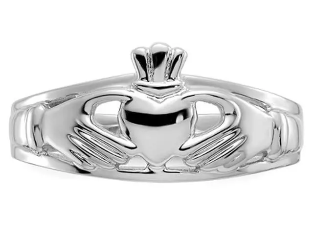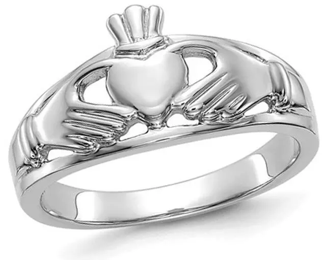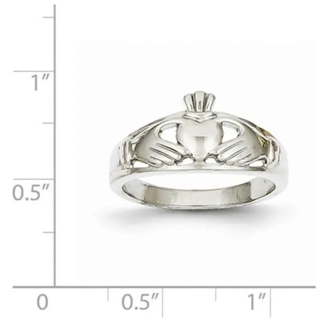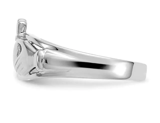Ladies Claddagh Ring in Polished 14K White Gold