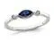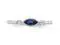 A solitaire lab created oval blue sapphire gemstone sits in the warm embrace of rhodium plated sleek sterling silver in this classic gemstone ring. Sapphire is the birthstone for September. Two white topaz gems support the beautiful blue gem.