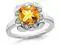 A beautiful sunny yellow cushion-cut citrine gemstone 2.38 carats (ctw) the birthstone of November is prong set into crisp polished 14 karat white gold in this simple and elegant gold ring. Eight Sparkling round diamonds 1/12 carat (ctw) surround the yellow gemstone to complete the look.