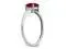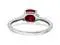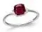 A single solitaire cushion cut lab created ruby 1.25 Carats (ctw) sits in a sterling silver rhodium plated setting in this classic July Birthstone gemstone ring.